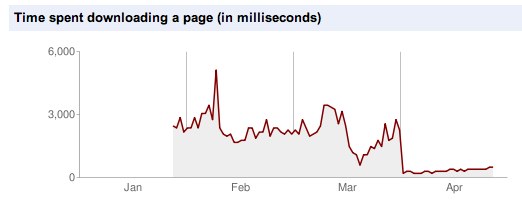 Remember last week when I told you that Google Webmaster Tools was reporting faster page load time? Well, I found another interesting metric, under Diagnostics < Crawl stats. It looks like the Googlebot is also crawling my site much faster: