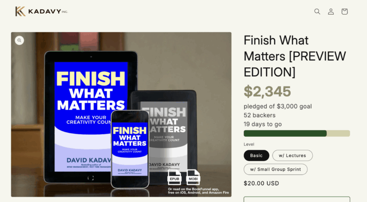 The Preview Edition of Finish What Matters will be helping book sales and overall income. As I write this, the campaign has been underway for ten days, and I’ve earned a bit more than $2,300.