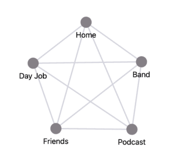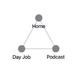 Let’s say you have your day job, your home life, and your podcast. These areas can conflict with each other in three different ways. For example, you can’t record your podcast at work but your house is only quiet enough to record while everyone is at work or school.