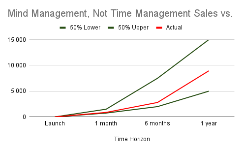 Mind Management, Not Time Management has now been out for a year! I recently got an email from PredictionBook, reminding me to evaluate the sales projections I made.